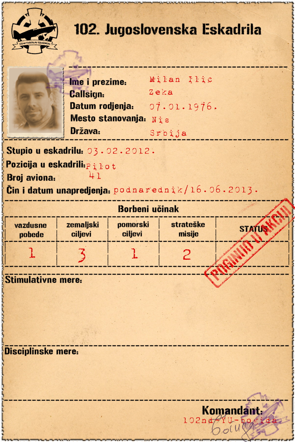 Čin podnarednika - 16.06.2013. Spomenica Srpsko-Bugarskog Rata 1885-1886 God. - Za ucešce u borbama u Warbirds arenama 2001-2003 God. Orden Karadordeve Zvezde 4. Reda - za planera u kampanji "Dankerk" Spomenica na rat 1912 - medalja za 1 godinu službe